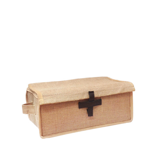 PRODUCT TYPE: Jute Shopping Bag (Natural) with Chain, Cotton Padded Rope Handle & Box X Stitching