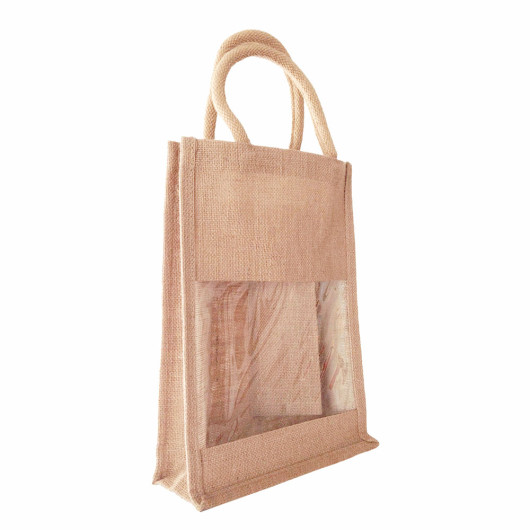 PRODUCT TYPE: Jute Clutch Shopping Bag with Cotton Tape Handle (and Customized Logo Print), Clutch Size: 9(L)x5(H)