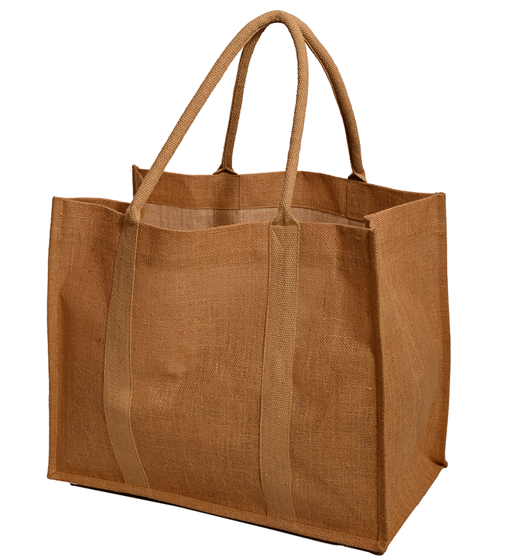 DESCRIPTION: “Plain large jute tote with cotton tape strap.