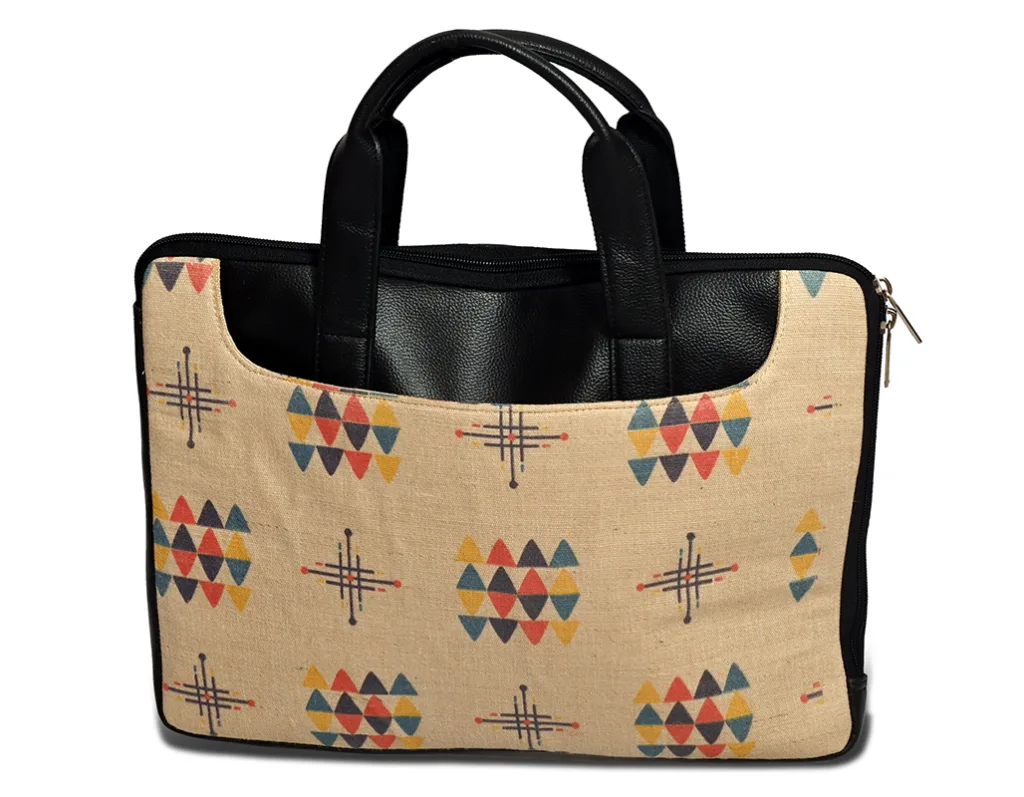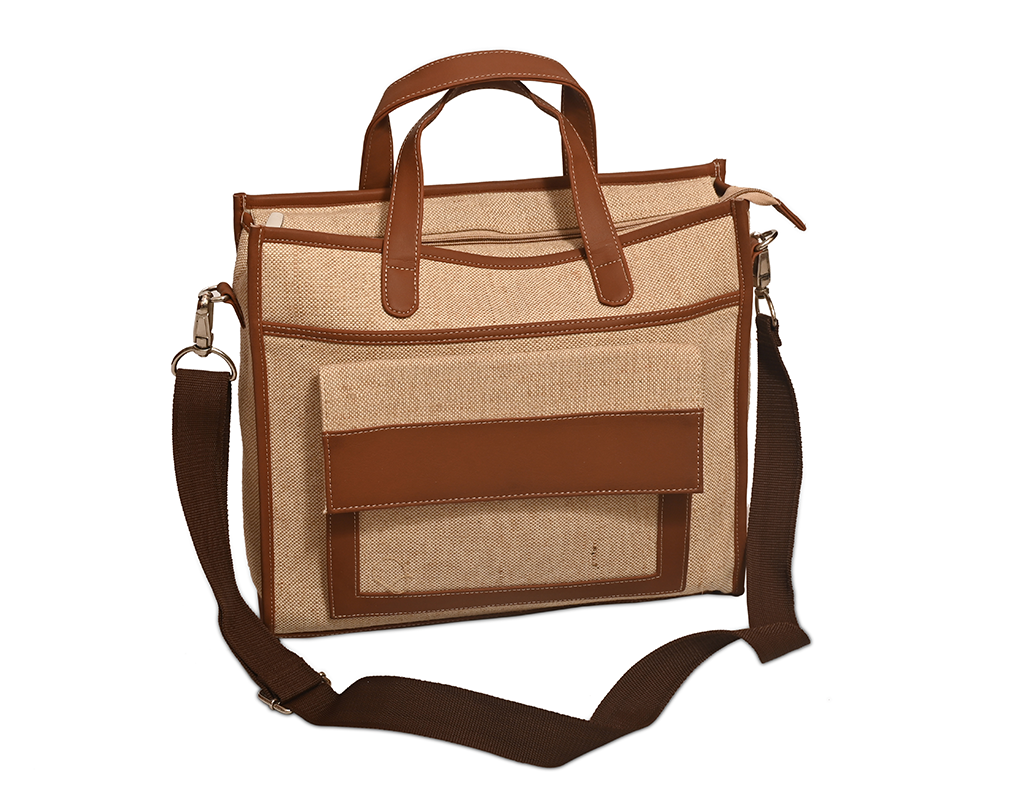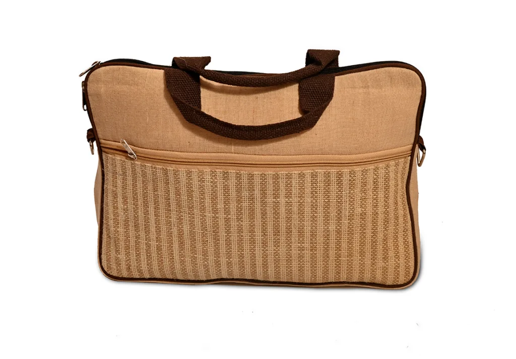 PRODUCT TYPE: Jute & Rexine Combination Laptop Bag (2 Partition), Front Side Chain Pocket & Inside 2 Partition Pocket,