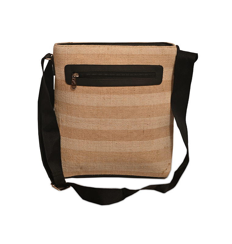 PRODUCT TYPE: Unisex Side Sling Bag (Designer Jute & Juco with Rexine Combination), with Synthetic Shoulder Handle,