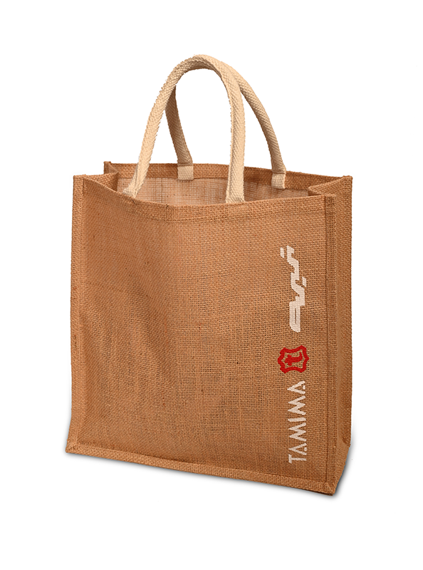 PRODUCT TYPE: Jute Shopping Bag (Natural), Customied 4 Colour Logo Print, Cotton Padded Rope Handle & Box X Stitching