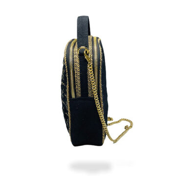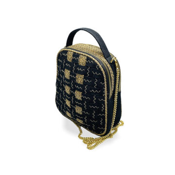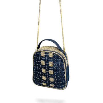 Checkered matted design with carefully zig zag stitched on top, comes with padding inside and double compartments. Quite spacious and the bag is off supreme quality.