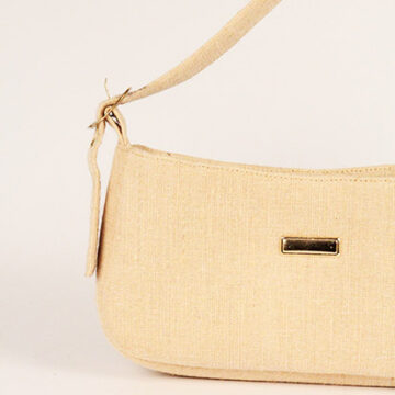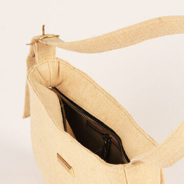“Badio” soft jute beige baguette bag.