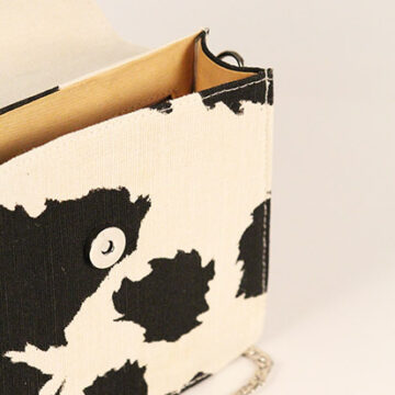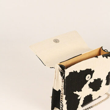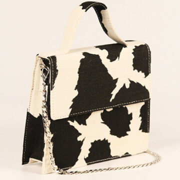 Neatly stitched in juco – this classic monochrome moo printed mini crossbody is unique and chic. It is practical and accommodates your essentials by laying a statement to every OOTD. It has a cotton lining inside, and comes with a tarnish free metal strap.