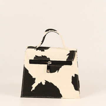 Carefully hand crafted in jute this classic black and white moo printed jute mini bag is unique, spacious and chic to fit your phone and essentials with an OOTD. It’s unisex.