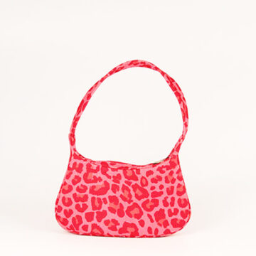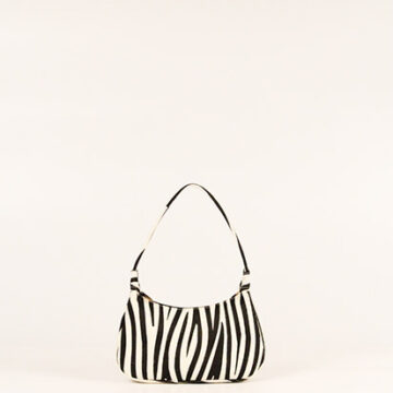 It’s a jute/cotton base with printed on top and faux leather studded straps with a zipper on the opening.