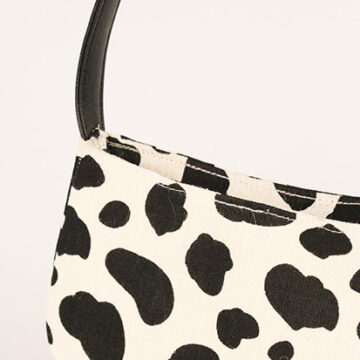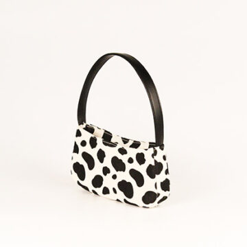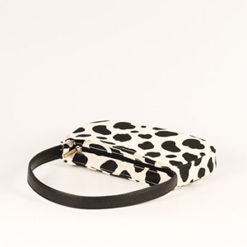 Classic moo printed baguette with faux leather straps.