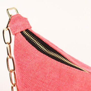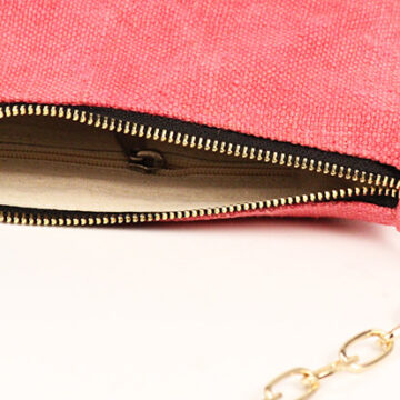 Stitched carefully, this classy elegant piece is made out of jute canvas fabric with gold plated tarnish free chain as its strap and gold zipper.