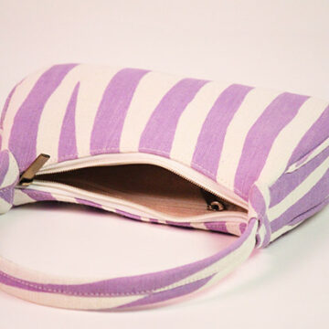 This lilac zebra print baguette is compact in size, sturdy, practical and spacious to carry everyday essentials.
