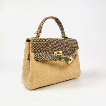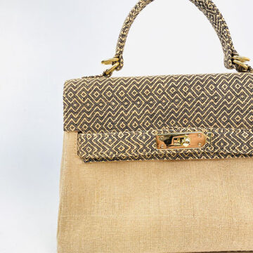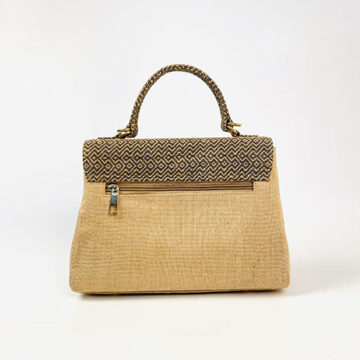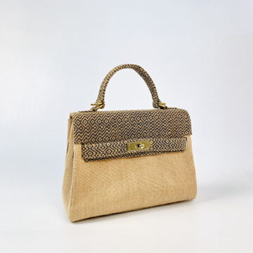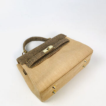 The top part of this bag is stitched with rare hand woven jute fabric which gives an ultra luxurious feel to the whole bag.