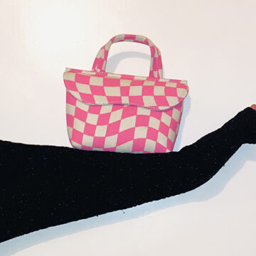 PINK & ASH blue mini which depicting FAYE – which can also be carried and styled as a belt pouch.