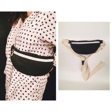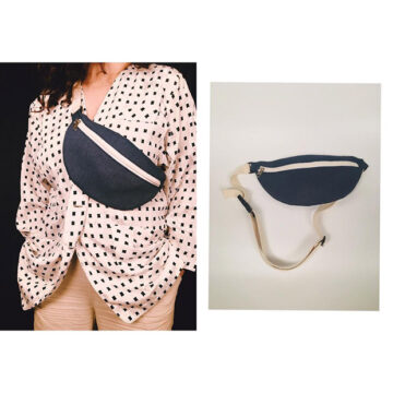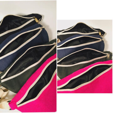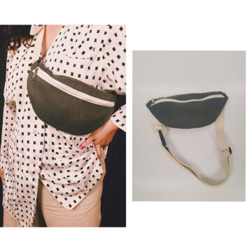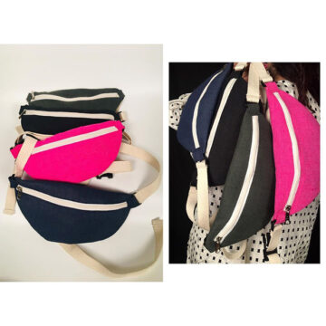 “FOLIE” waterproof jute fanny packs in fuchsia, grey, navy and black.