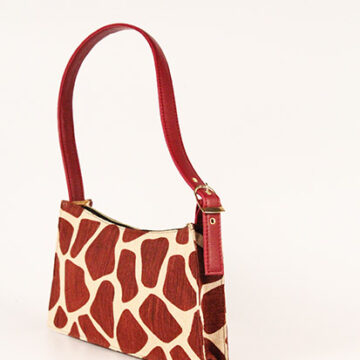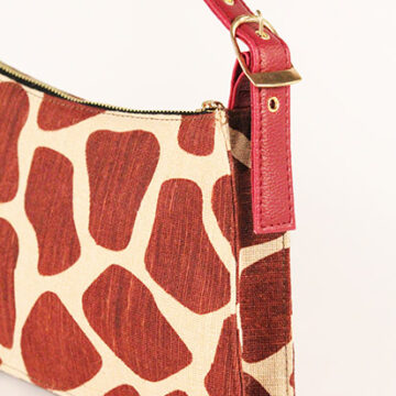 Jute Smart’s iconic giraffe printed shoulder bag. This unique shaped bag comes with adjustable faux leather straps by 3 knots, cotton lining inside with an inner pocket.