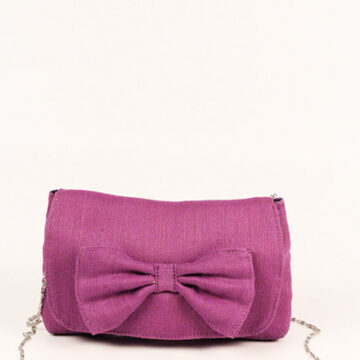 Purple chic clutch with bow tie which can also be carried as a sling bag.