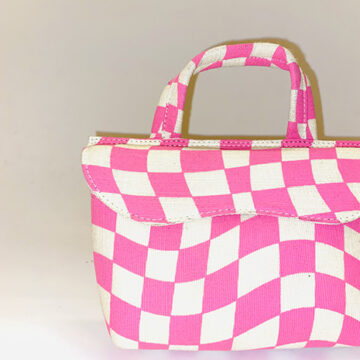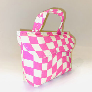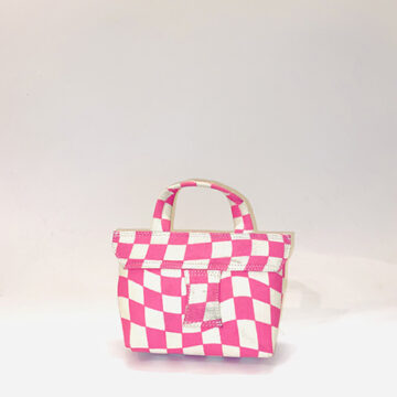 Chic pink and white checkered printed mini depicting the character LEXI – can also be carried and styled as belt pouch.