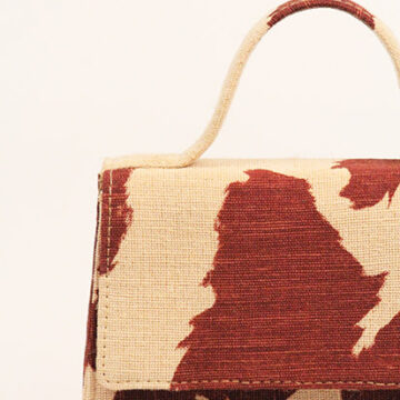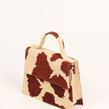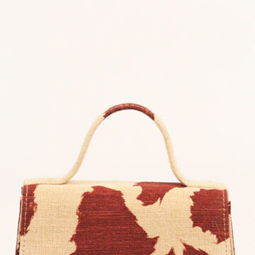 Carefully hand crafted in jute this classic brown and beige moo printed jute mini bag is unique, spacious and chic to fit your phone and essentials with an OOTD. It’s unisex.