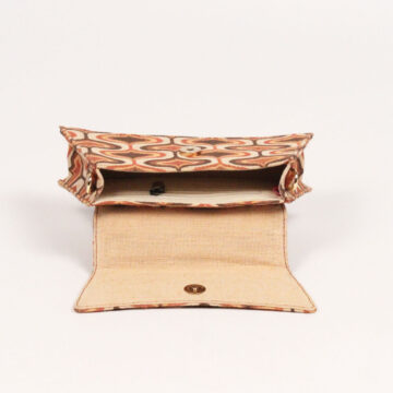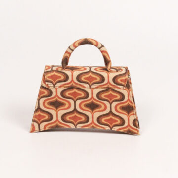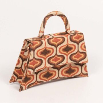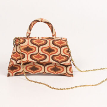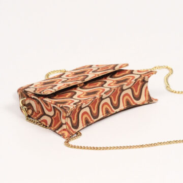 Description: Elegant shades of beige and brown with the trendy pattern print making it an interesting collaboration of renaissance and y2k fun, comes with a detachable tarnish free golden chain strap with a tailored length till the waist.