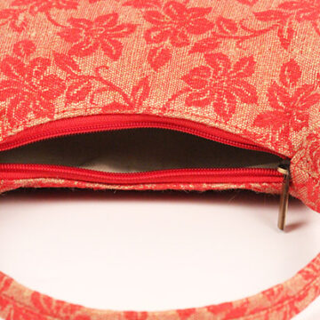 Made out of artisanal designer floral embossed jute fabric, this statement baguette has the luxe finish adding sophistication to any ethnic to western outfit.
