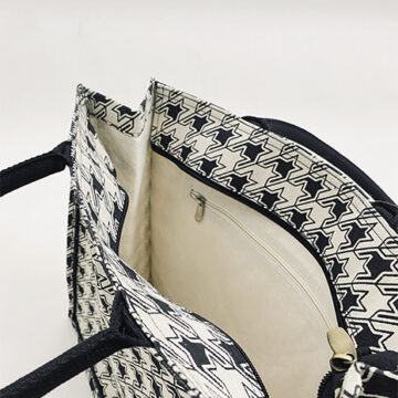 It is a beautifully crafted well-designed bag that is truly spectacular. This bag offers ample space to carry your daily essentials. It features a roomy interior compartment that can accommodate your wallet, phone, keys, water bottle, notebook, and other items you need. It has an alluring pattern design and is equipped with robust and durable handles, and the opening features a zipper. This bag is beautiful and truly is a masterpiece by us. Jute Smart, a well-renowned company manufactures, supplies, wholesales, and retails it across India.
