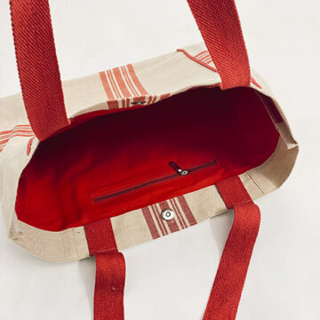 Tracy Hand crafted jute cotton patterned luxurious finished daily essentials tote bag is a sturdy yet chic tote bag with ample space inside to fit groceries, laptop, files and everything you need to simply dump and move on the go.