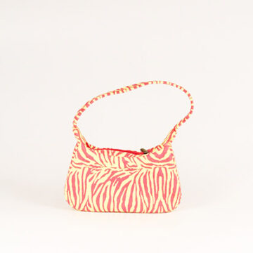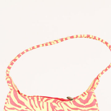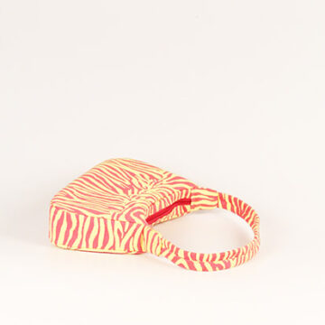 Y2k style yellow zebra print baguette on pink as a base. Cotton lining inside with an inner pocket.